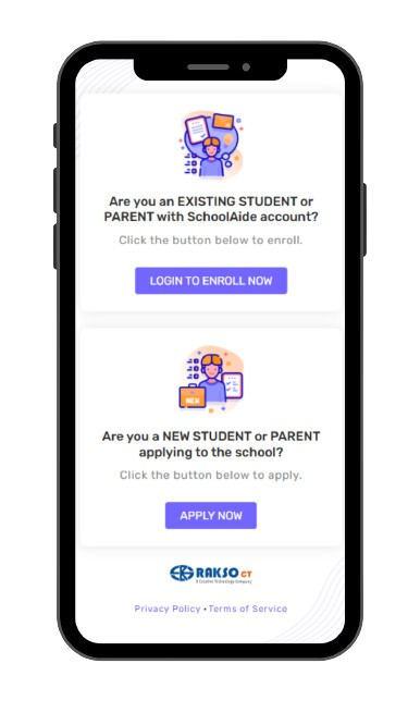 Navigate to “Are you a new student or parent applying to the school?”.